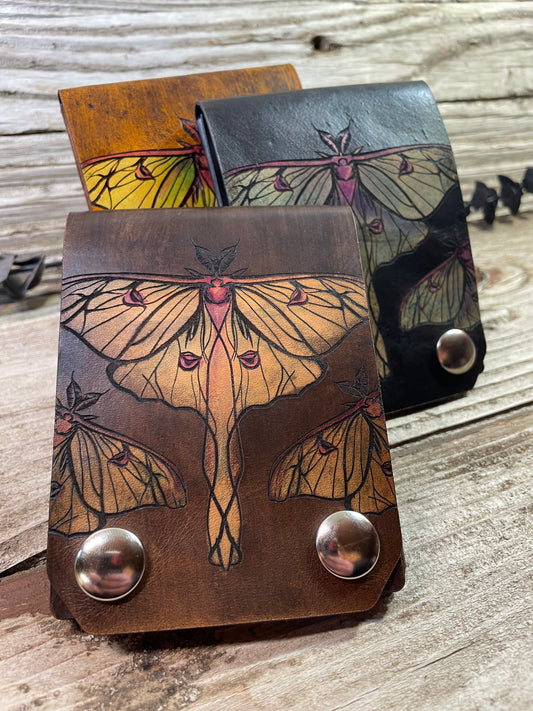 Luna Moth Leather KeyChain Card Wallet